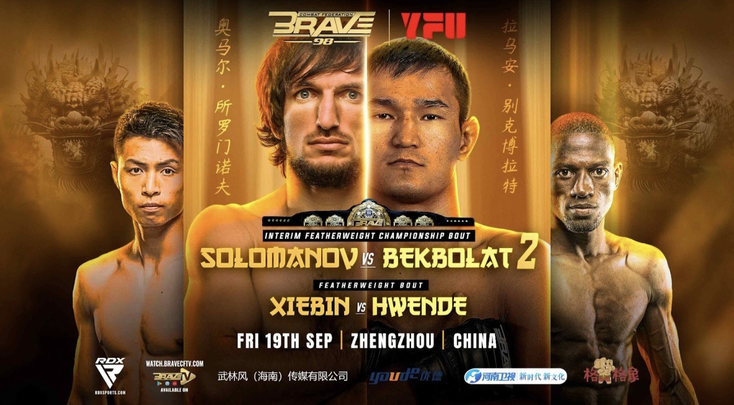 Brave CF 98: Solomanov vs. Bekbolat 2 Głądy Historical MMA card at Zhengzhouveve CF 98 set for 19 September in Zhengohou with the fleeting title of the world on the line