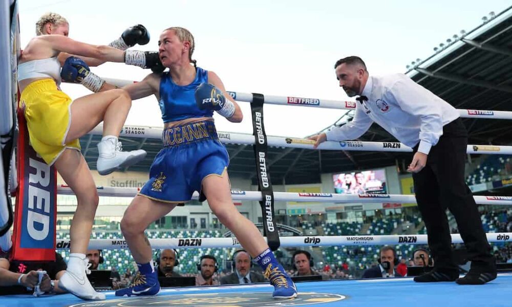 Molly McCann successfully made the transition from the UFC octagon to the boxing ring on Saturday night, scoring an emphatic victory over Kate Rodomska in her...