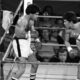 Boxer Joseph George fell from his stool after the first round of his fight with Atif Oberlton. George finished one round of his airy heavyweight match...