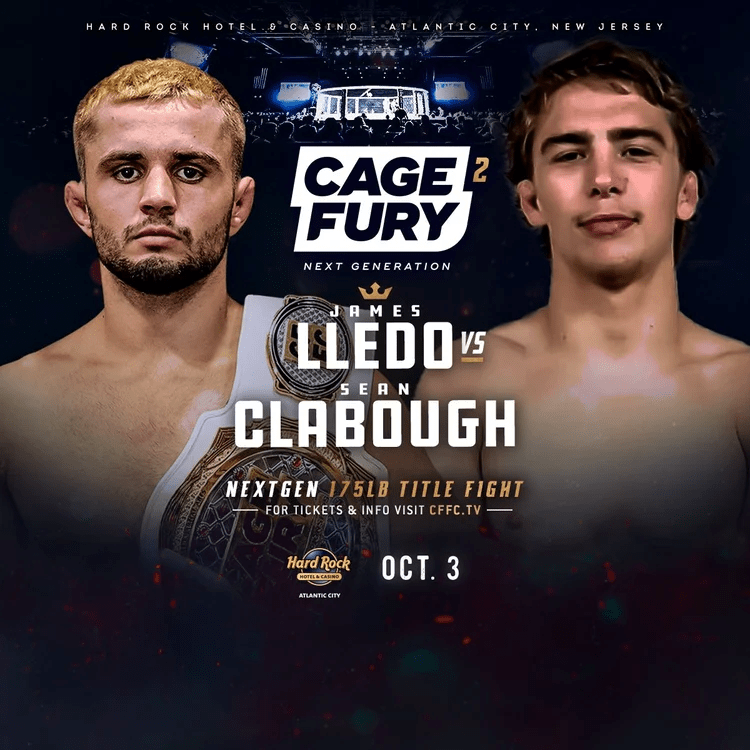 CFFC Nextgen 2: James Lledo vs. Sean Clabough Headers Four title fights in Atlantic CityCFFC Nextgen 2: James Lledo defends the title vs. Sean Clabough at Demanding Rock Atlantic City