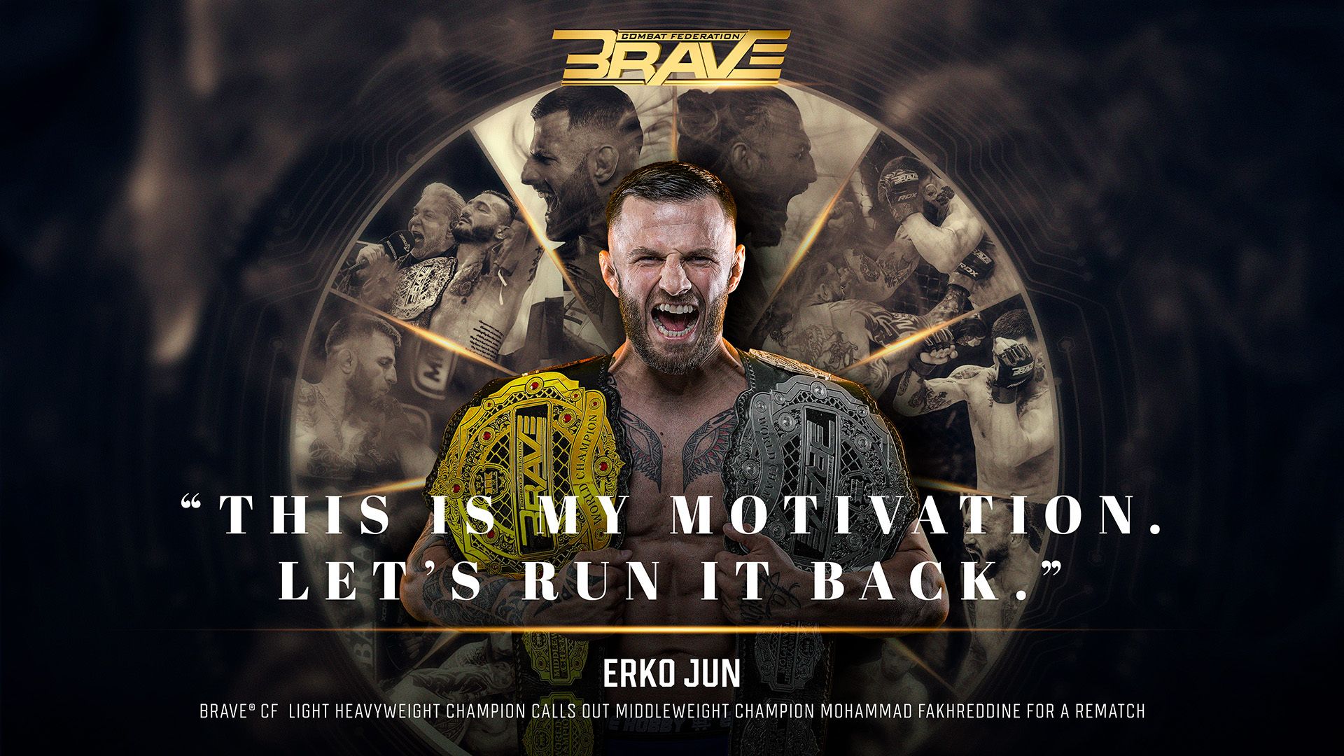 The competition between the two biggest names of the Brave Combat federation heats up again. In the last social media film, the prevailing master of lightweight heavyweight Erko Jun is intensively staring at the poster of his first fight with Mohammad Fakhreddine in Brave CF 96, declaring: