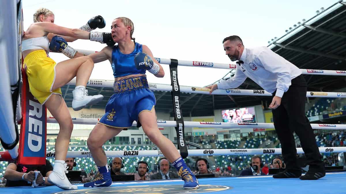 Molly McCann survived a kick to the ribs to win her boxing debut