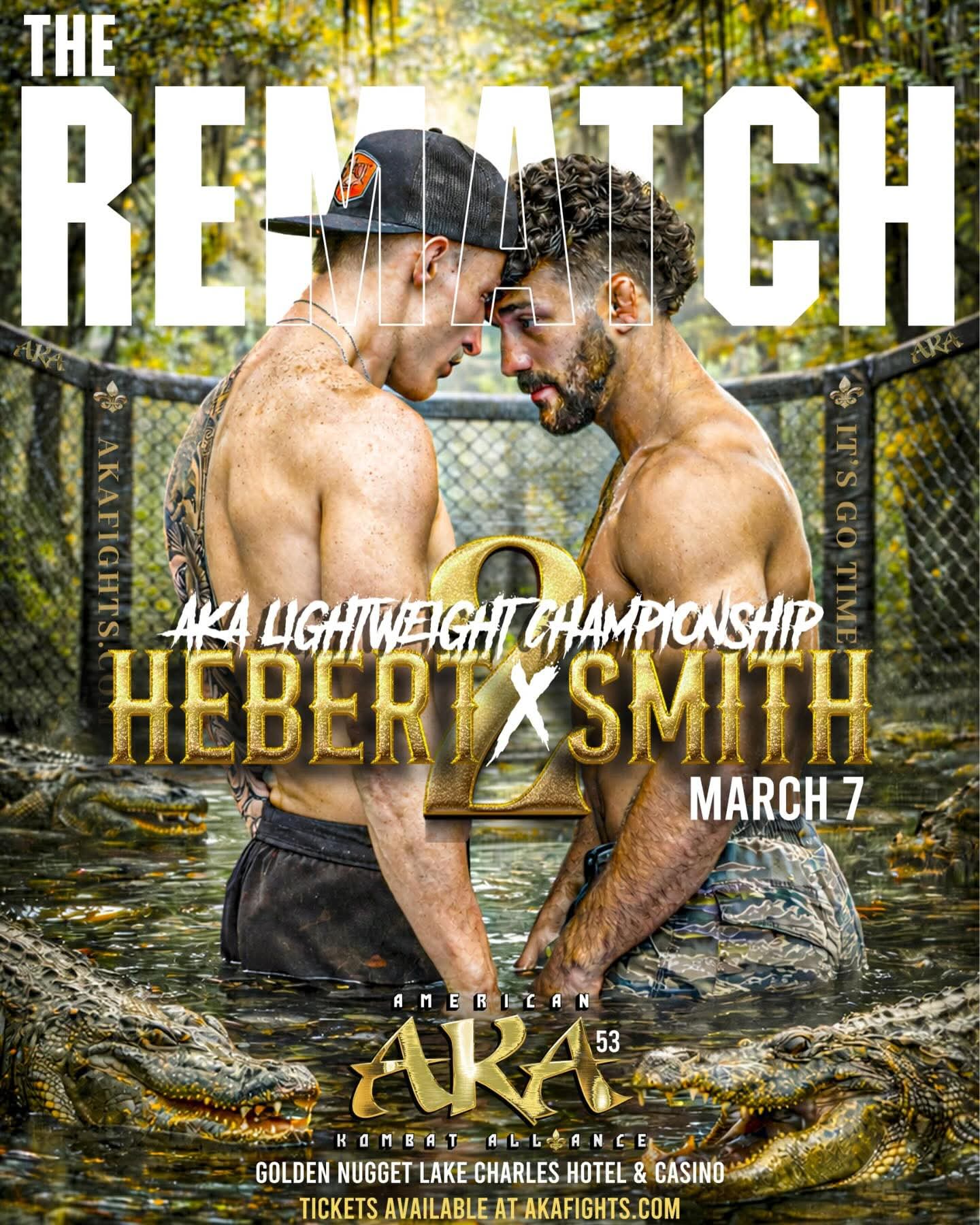 Lake Charles in Louisiana — AKA 53 Countdown – Hebert vs. Smith 2 it’s not just another fight night. It’s a story of competition, redemption and dreams of championship. Two warriors. Two gymnasiums. Two cities. One gold stripe.