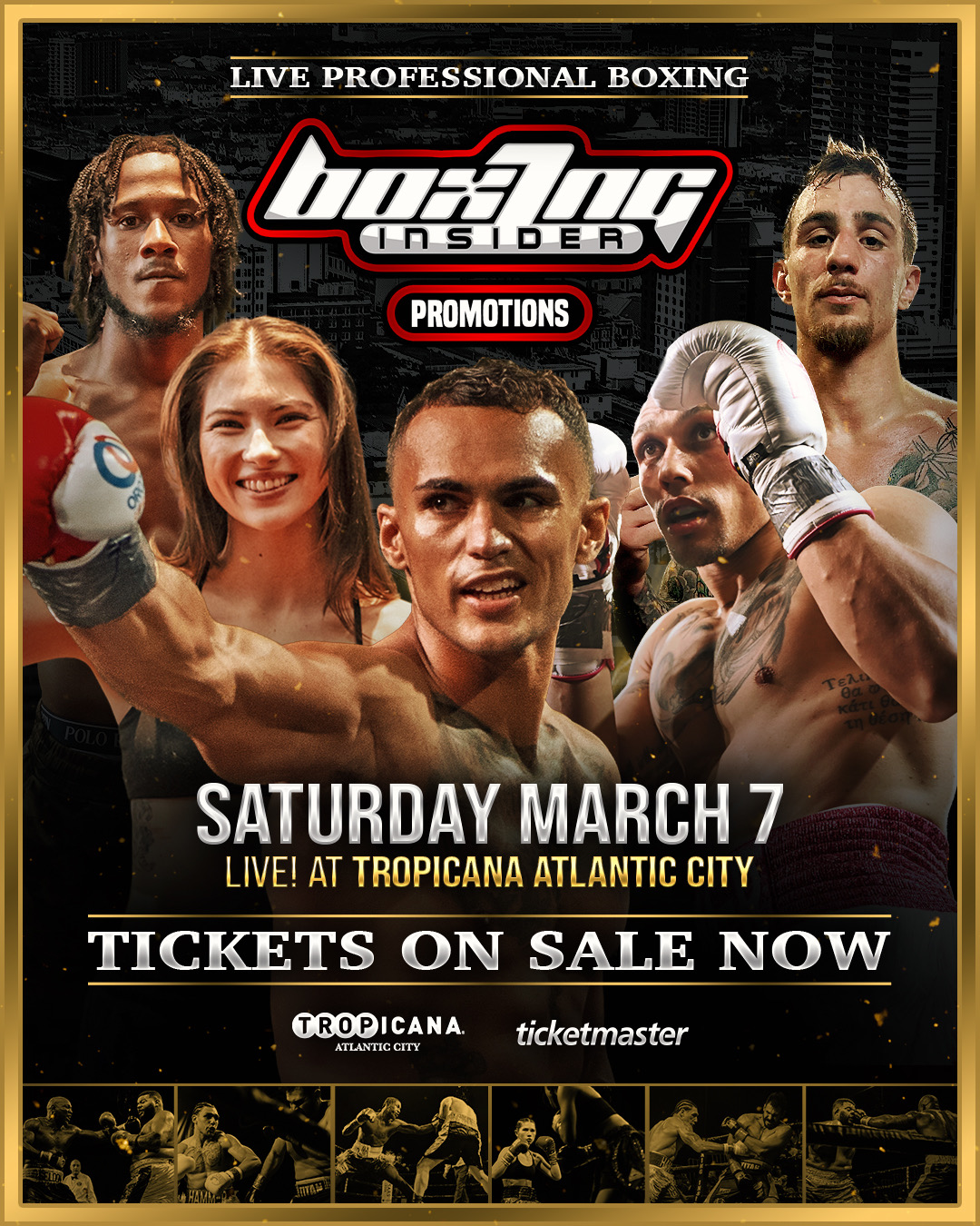 Tickets are available on sale now via Ticketmaster. Full card coverage live and free from the Tropicana lounge on the site BoxingInsider YouTube Channel — no paywall, no subscription, just boxing as it should be.